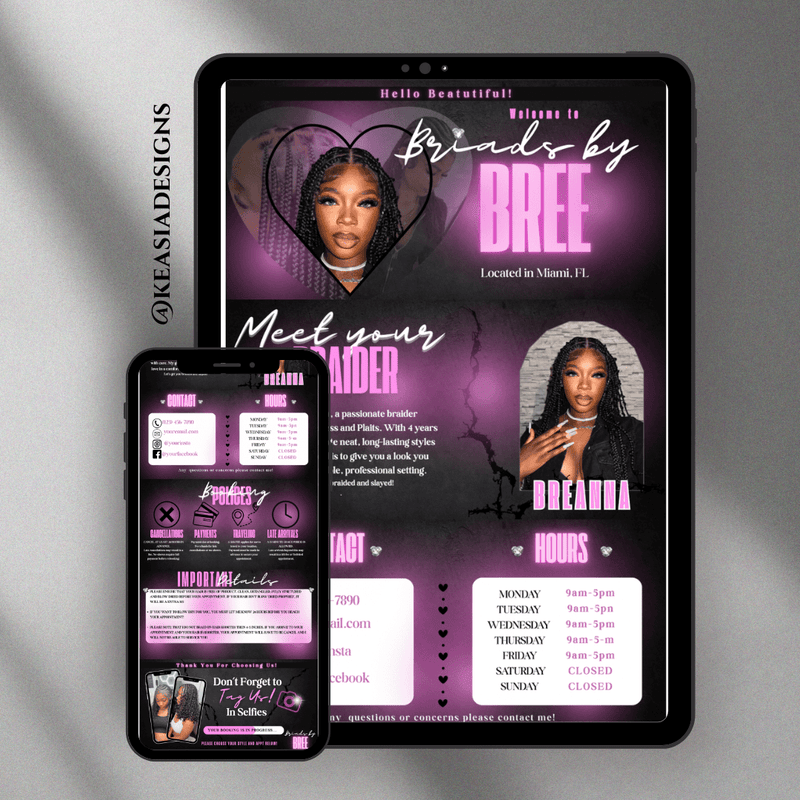 Hi, I’m Ke’Asia, a graphic designer with 5+ years of experience helping beauty brands elevate their image and attract more clients. I specialize in creating strategic, high-quality designs that not only look good, but actually convert. My goal is to help you stand out, build trust, and turn your views into real, paying clients.